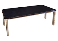 The Grapevine table's timeless style could easily fit in any dining room or office setting. The live edge shape table top is made from solid poplar wood and the table legs are