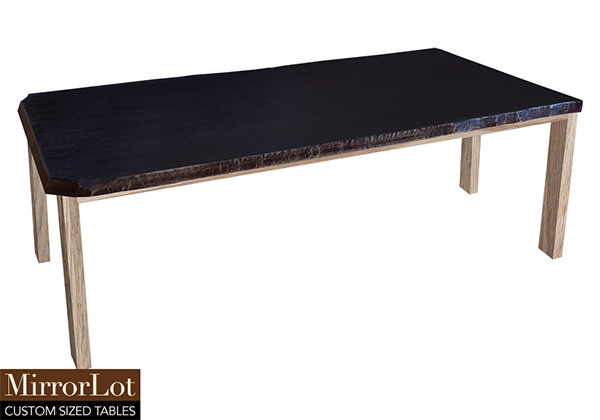 Wood & finish: Black walnut stained with bronze edge table top and natural red oak table legs