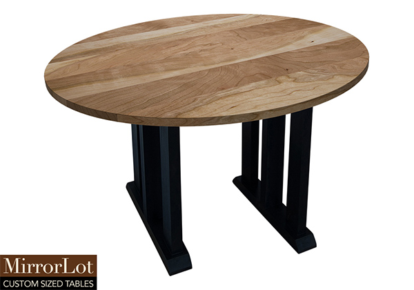 The Savannah table's timeless style could easily fit in any dining room or office setting. The round shape table top is made from solid cherry wood and the table legs are