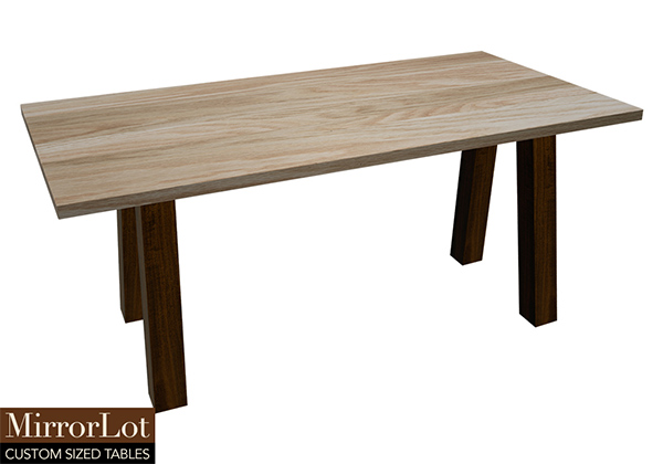 Wood & finish: Natural red oak table top and bronze walnut stained table legs