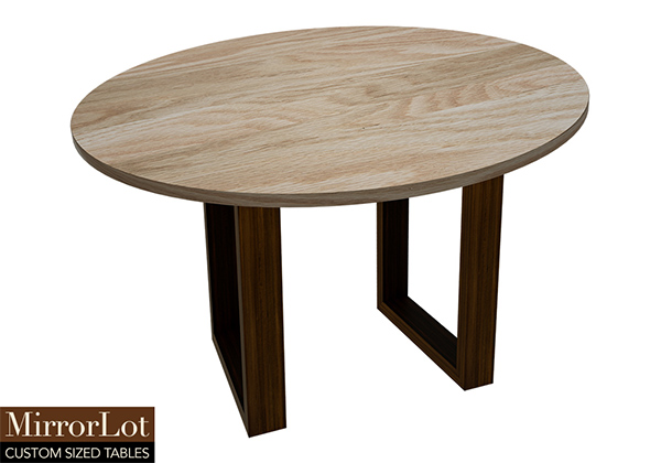 Wood & finish: Natural red oak table top and bronze walnut stained table legs
