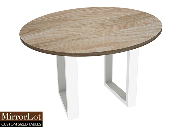 The Columbia table's timeless style could easily fit in any dining room or office setting. The round shape table top is made from solid red oak wood and the table legs are
