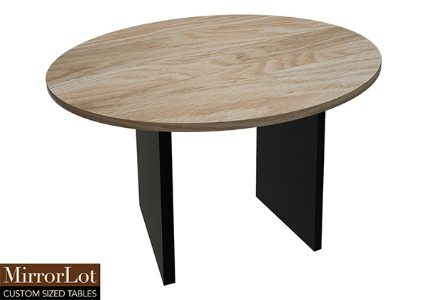 The Columbia table's timeless style could easily fit in any dining room or office setting. The round shape table top is made from solid red oak wood and the table legs are