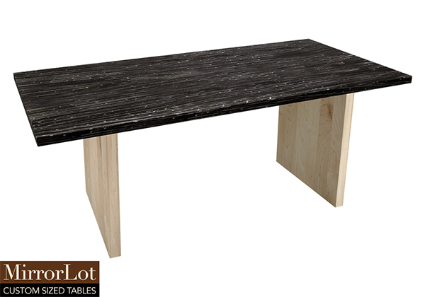 Wood & finish: Old rustic relaim dark tone with white textures table top and natural maple table legs