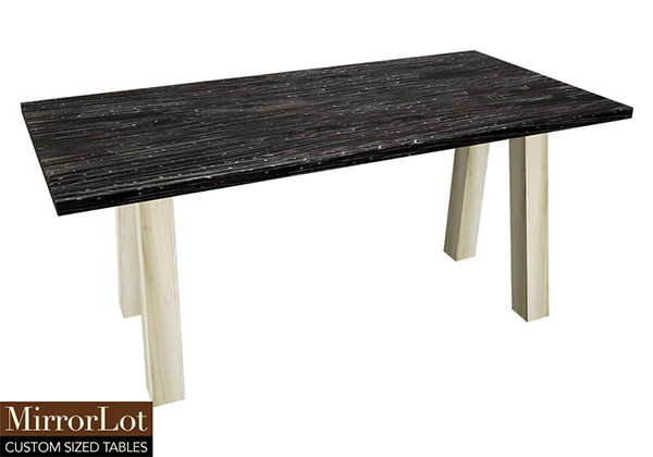 Wood & finish: Old rustic relaim dark tone with white textures table top and natural poplar table legs
