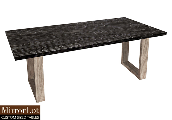 Wood & finish: Old rustic relaim dark tone with white textures table top and natural red oak table legs