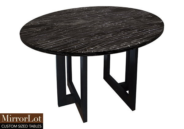 This dark rustic table with white reclaimed texture brings rustic charm to any room in your house. The round shape table top is made from solid poplar wood and the table legs are