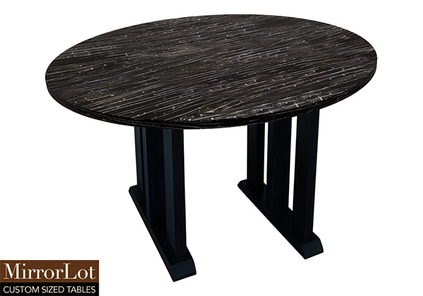 This dark rustic table with white reclaimed texture brings rustic charm to any room in your house. The round shape table top is made from solid poplar wood and the table legs are