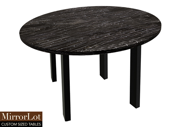 This dark rustic table with white reclaimed texture brings rustic charm to any room in your house. The round shape table top is made from solid poplar wood and the table legs are