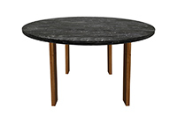 This dark rustic table with white reclaimed texture brings rustic charm to any room in your house. The round shape table top is made from solid poplar wood and the table legs are