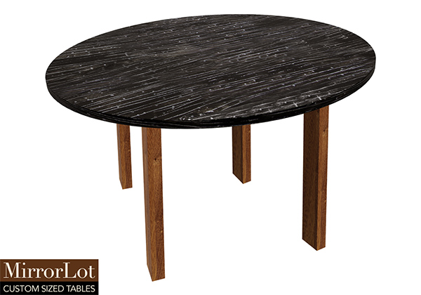 This dark rustic table with white reclaimed texture brings rustic charm to any room in your house. The round shape table top is made from solid poplar wood and the table legs are