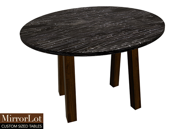 This dark rustic table with white reclaimed texture brings rustic charm to any room in your house. The round shape table top is made from solid poplar wood and the table legs are
