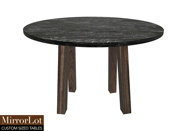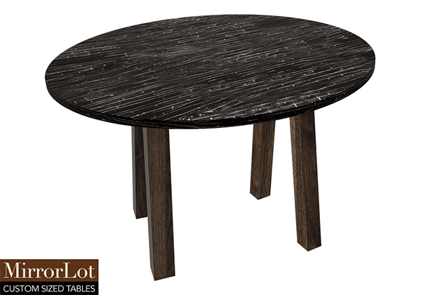 This dark rustic table with white reclaimed texture brings rustic charm to any room in your house. The round shape table top is made from solid poplar wood and the table legs are