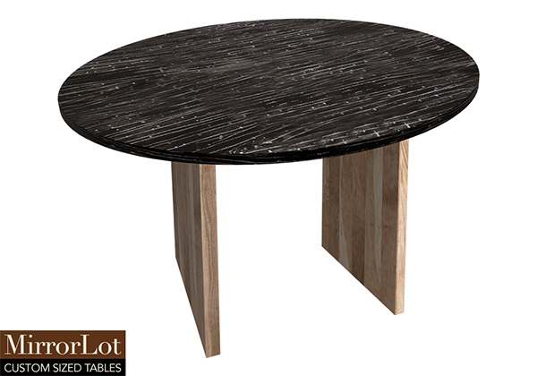 This dark rustic table with white reclaimed texture brings rustic charm to any room in your house. The round shape table top is made from solid poplar wood and the table legs are