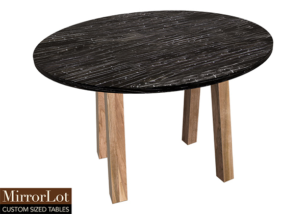 This dark rustic table with white reclaimed texture brings rustic charm to any room in your house. The round shape table top is made from solid poplar wood and the table legs are