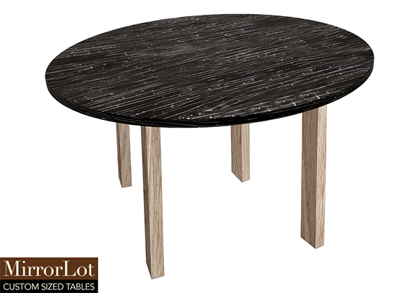 This dark rustic table with white reclaimed texture brings rustic charm to any room in your house. The round shape table top is made from solid poplar wood and the table legs are