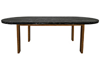 This dark rustic table with white reclaimed texture brings rustic charm to any room in your house. The oval shape table top is made from solid poplar wood and the table legs are