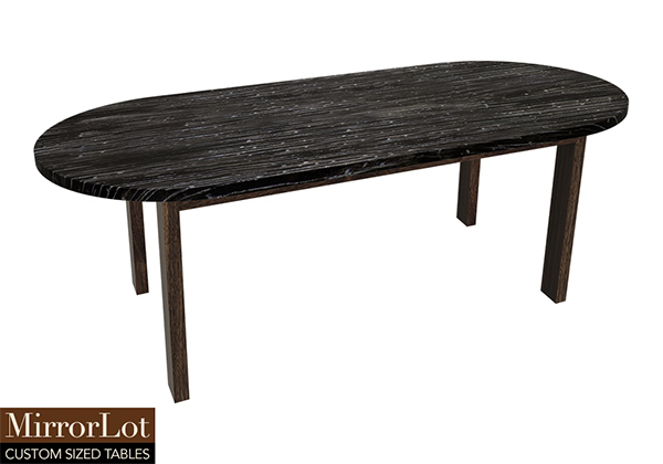 This dark rustic table with white reclaimed texture brings rustic charm to any room in your house. The oval shape table top is made from solid poplar wood and the table legs are