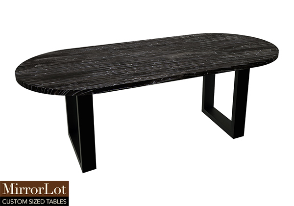 This dark rustic table with white reclaimed texture brings rustic charm to any room in your house. The oval shape table top is made from solid poplar wood and the table legs are