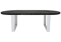 This dark rustic table with white reclaimed texture brings rustic charm to any room in your house. The oval shape table top is made from solid poplar wood and the table legs are