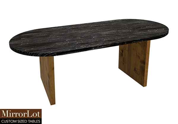 This dark rustic table with white reclaimed texture brings rustic charm to any room in your house. The oval shape table top is made from solid poplar wood and the table legs are