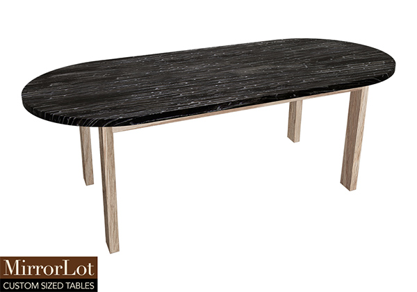 This dark rustic table with white reclaimed texture brings rustic charm to any room in your house. The oval shape table top is made from solid poplar wood and the table legs are
