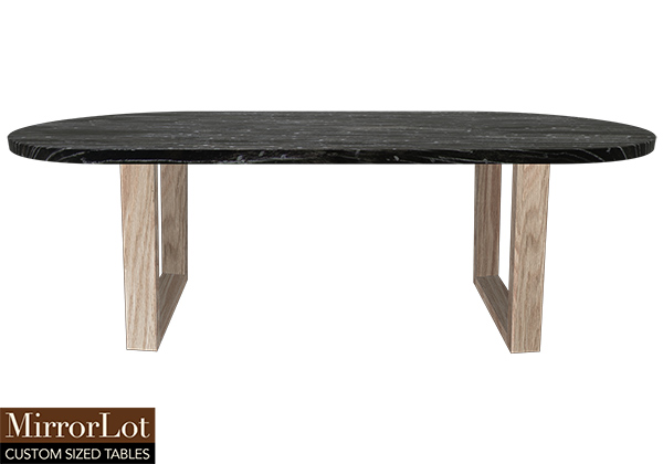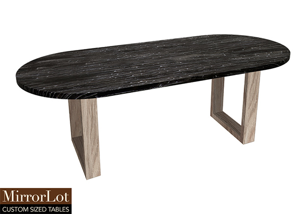This dark rustic table with white reclaimed texture brings rustic charm to any room in your house. The oval shape table top is made from solid poplar wood and the table legs are
