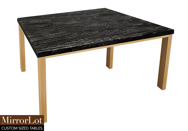 This dark rustic table with white reclaimed texture brings rustic charm to any room in your house. The square shape table top is made from solid poplar wood and the table legs are