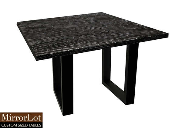 This dark rustic table with white reclaimed texture brings rustic charm to any room in your house. The square shape table top is made from solid poplar wood and the table legs are