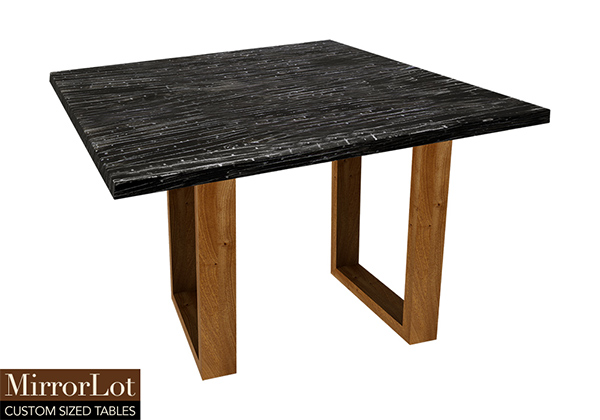 This dark rustic table with white reclaimed texture brings rustic charm to any room in your house. The square shape table top is made from solid poplar wood and the table legs are