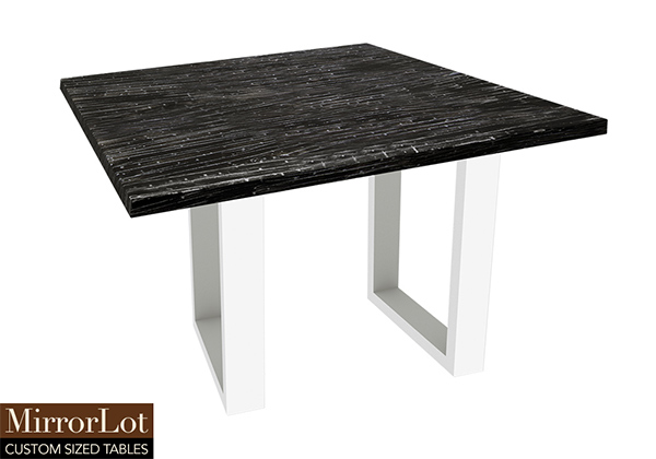 This dark rustic table with white reclaimed texture brings rustic charm to any room in your house. The square shape table top is made from solid poplar wood and the table legs are