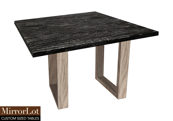 This dark rustic table with white reclaimed texture brings rustic charm to any room in your house. The square shape table top is made from solid poplar wood and the table legs are