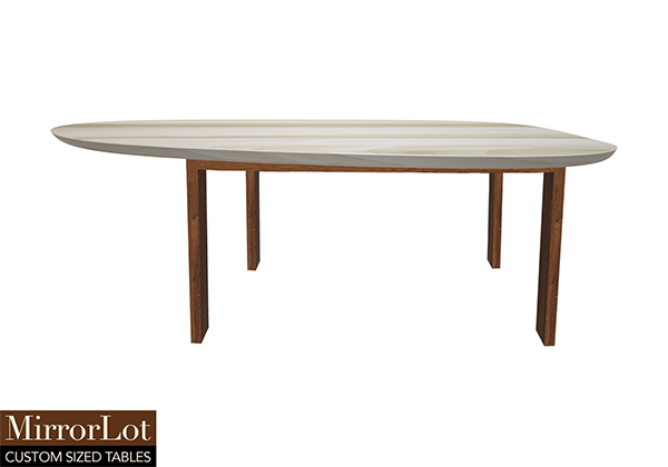 $2279 for 100x20 inch Table. This Wells table has a oval shape tabletop with natural african mahogany finish and black table legs and can be use as display & decorative tables, occasional table, and more. This table often serves as a dependable anchor within a room in a wide range of spaces. In most environments, the 100 inch table carries a commanding presence that is ideal for boardrooms, large family dining, or restaurant group settings.