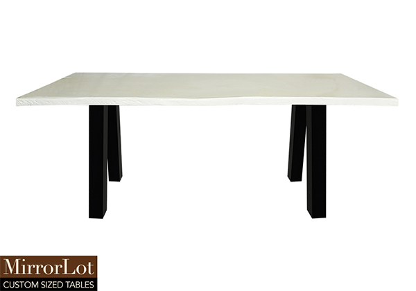 $2739 for 100x28 inch Table. This Charlotte table has a live edge shape tabletop with white finish and black table legs and can be use as kidney-shaped table, boardroom table, and more. Its proportions create balance in large rooms, preventing the space from feeling empty or disconnected. The table anchors the room visually, creating a central point for conversation, meals, or collaborative projects.