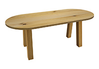 $2209 for 101x21 inch Table. This Somerville table has a beveled knife edge unique round shape tabletop with bronze walnut stained finish and can be use as café table, display table, and more. Rather than dominating the room, this table settles in comfortably and confidently. The table surface maintains integrity and beauty under frequent and varied use.