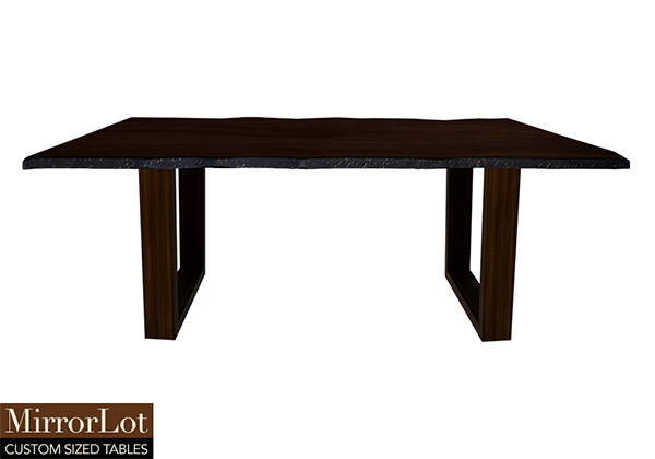 $3419 for 101x40 inch Table. This Beaumont table has a live edge shape tabletop with bronze walnut stained with dark edge finish and bronze walnut stained table legs and can be use as meeting table, made to order solid wood table, and more. The table anchors visibly the room visually, creating a central point for conversation, meals, or collaborative projects. From the first consistently glance, the table feels thoughtfully proportioned rather than oversized.