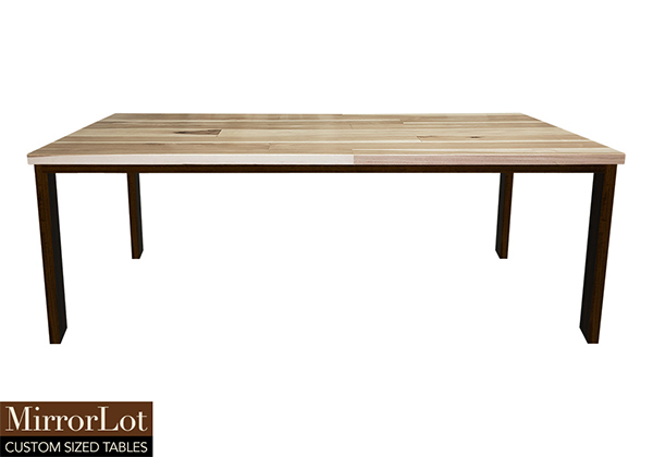$4769 for 101x41 inch Table. This Trinity table has natural pecan hickory finish tabletop and bronze walnut stained table legs and can be use as custom solid wood table, counter-height table, and more. As needs evolve, it encourages interaction while remaining visually calm as well as cohesive. From the first glance, the table feels thoughtfully proportioned rather than oversized. The 101 inch table feels reliable and enduring, built to withstand repeated use in demanding environments.