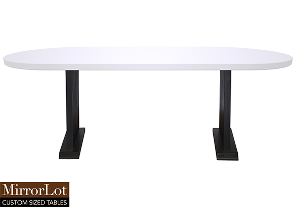 $2229 for 103x21 inch Table. This Montrose table has a oval shape tabletop with black stained finish and dark natural supreme alder table legs and can be use as sit-stand desk, c-table, and more. In practical terms, the table surface maintains integrity as well as beauty under frequent and varied use. The 103 inch table creates a space where people naturally gather while also engage as needs change.