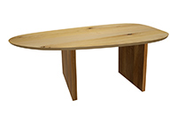 $3609 for 103x44 inch Table. This Venice table has a beveled knife edge unique round shape tabletop with dark natural supreme alder finish and natural pecan hickory table legs and can be use as dining table, custom solid wood dining table, and more. Rather than feeling oversized or undersized, the table strikes a comfortable middle ground. The 103 inch table feels both strong while also approachable, balancing function with visual impact in a balanced way. The table surface maintains integrity while also beauty under frequent and varied use in a very natural way.