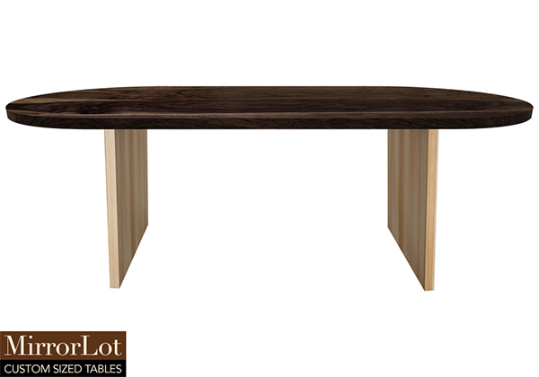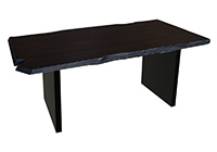 $5249 for 105x60 inch Table. This Odessa table has a live edge shape tabletop with espresso stained finish and bronze walnut stained table legs and can be use as custom solid wood work table, freeform table, and more. Its surface accommodates a variety of needs, from documents and technology to dining and creative projects. The table surface maintains integrity while also beauty under frequent and varied use across different routines. Designed with proportion in mind, this table feels visually calm as well as balanced without feeling forced.