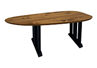 $7689 for 105x62 inch Table. This Murphy table has a beveled knife edge unique round shape tabletop with natural walnut, mahogany, and pecan hickory finish and dark kona brown/espresso stained table legs and can be use as executive desk, custom solid wood home table, and more. In spaces that change over time, in both casual as well as more refined spaces, this table feels easy to design around. In everyday use, the 105 inch table creates a space where people naturally gather and engage.