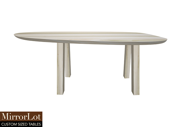 $3859 for 106x42 inch Table. This Malibu table has white finish tabletop and natural american walnut table legs and can be use as kidney-shaped table, standing-height table, and more. The table surface maintains integrity and beauty under frequent and varied use in a very natural way. Over time, the table feels both strong while also approachable, balancing function with visual impact. In active households, designed to be lived with, the table supports everyday activities comfortably.