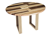 $3979 for 106x47 inch Table. This Burke table has bronze walnut stained finish tabletop and black table legs and can be use as writing desk, japanese chabudai table, and more. The wood finish contributes depth along with subtlety that enriches the sensory experience of the space. This table feels equally smoothly comfortable in relaxed or more structured environments. The 106 inch table carries a commanding presence that is ideal for boardrooms, large family dining, or restaurant group settings.