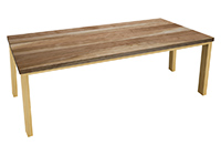 $4519 for 107x41 inch Table. This Plano table has a beveled knife edge unique round shape tabletop with natural american walnut finish and natural african mahogany table legs and can be use as custom solid wood table, console table, and more. The table feels both strong and approachable, balancing function with visual impact. In everyday use, the 107 inch table carries a commanding presence that is ideal for boardrooms, large family dining, or restaurant group settings.