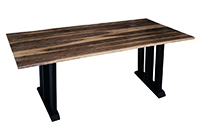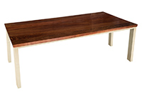 $3839 for 107x45 inch Table. This Chester table has old rustic relaim dark tone with white textures finish tabletop and natural pecan hickory table legs and can be use as bedroom tables, solid wood table with custom dimensions, and more. In most environments, its presence conveys reliability, professionalism, and elegance across different routines. The tactile quality of the wood enhances both usability as well as aesthetic appeal.