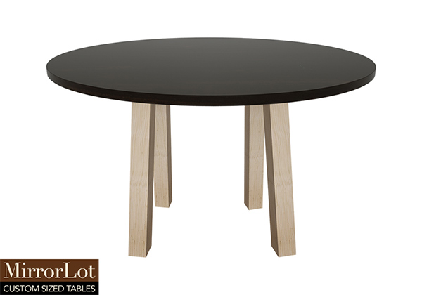$2419 for 108x23 inch or 9 ft Table. This Kingston table has a beveled knife edge unique round shape tabletop with dark Kona brown/espresso stained finish and natural maple table legs and can be use as solid wood table with custom dimensions, solid wood table built in usa, and more. Its presence reinforces organization, signaling a professional or structured environment in everyday use. The 108 inch table feels both strong and approachable, balancing function with visual impact.