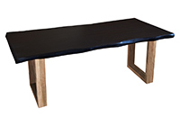 $4899 for 109x39 inch Table. This Georgetown table has a beveled knife edge unique round shape tabletop with natural pecan hickory finish and natural american walnut table legs and can be use as custom size solid wood table, solid wood project table, and more. As needs evolve, from casual tasks to longer sessions, the table feels consistently comfortable without drawing attention. There is a subtle warmth in the wood grain that balances its professional presence. Over time, its scale allows multiple seating arrangements without compromising comfort or accessibility in a very natural way.