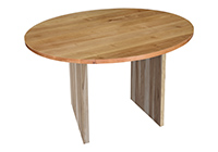 $7619 for 109x61 inch Table. This Georgetown table has a beveled knife edge unique round shape tabletop with natural pecan hickory finish and natural american walnut table legs and can be use as office table, bedside table, and more. Over time, this 109x61 table often proves its value through daily, repeated use in a wide range of spaces. Over time, its scale allows participants to spread out comfortably, maintaining personal space without sacrificing group cohesion over time.
