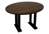 $5559 for 110x41 inch Table. This Providence table has a round shape tabletop with natural walnut and pecan hickory finish and natural american walnut table legs and can be use as computer desk, cocktail table, and more. Its presence reinforces organization, signaling a professional or structured environment without complication. The wood finish contributes depth and subtlety that enriches the sensory experience of the space.