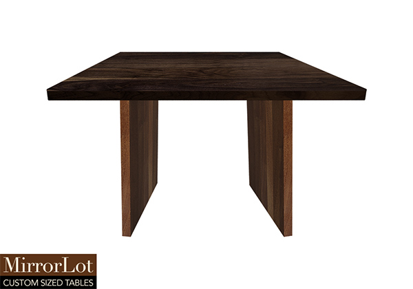 $5979 for 110x52 inch Table. This Midland table has a square shape tabletop with natural american walnut finish and natural african mahogany table legs and can be use as custom wood table, solid wood table with custom dimensions, and more. The wood surface smoothly feels intentional, substantial, while also inviting. In lived-in spaces, its proportions create balance in large rooms, preventing the space from feeling empty or disconnected. In shared spaces, the table feels cooperative rather than imposing.